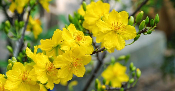 Miền Bắc có hoà đào thì miền Nam có hoa mai. Màu vàng của hoa mai từ lâu được xem là màu tượng trưng cho sự giàu sang, phú quý. Người ta chưng hoa mai vào dịp Tết với mong muốn một năm mới phát tài, giàu sang. Theo quan niệm của nhiều người, nhà nào có hoa mai nở càng nhiều cánh thì nhà đó càng may mắn và sung túc trong năm mới. Cây mai có rễ cắm sâu vào lòng đất, không bị gục ngã trước gió bão. Nó cũng có thể chịu đựng được mọi loại thời tiết, kể cả khắc nghiệt. Bởi vậy mà mai còn tượng trưng cho phẩm đức nhẫn nại và đức hy sinh cao cả, sự bền bỉ của người Việt Nam nói chung.